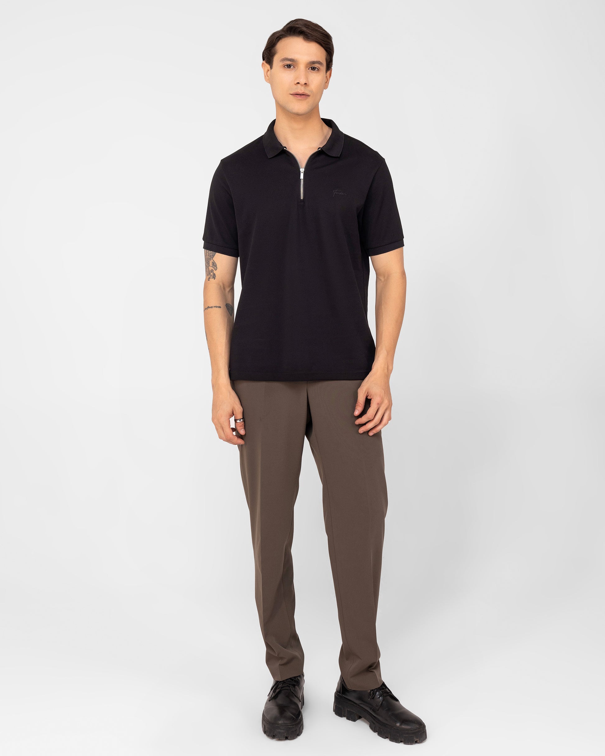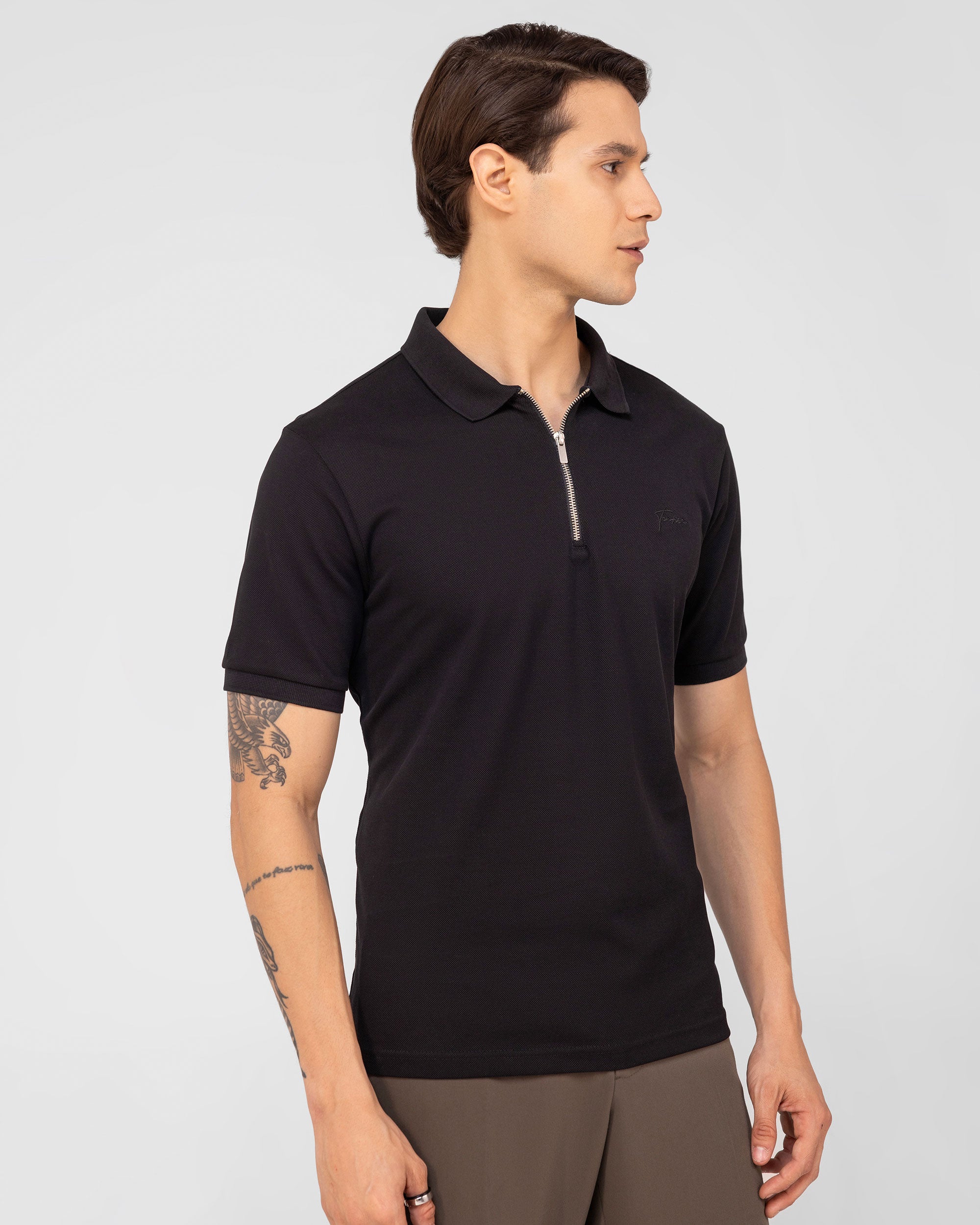 Men's Black Pique Cotton Zipper Polo