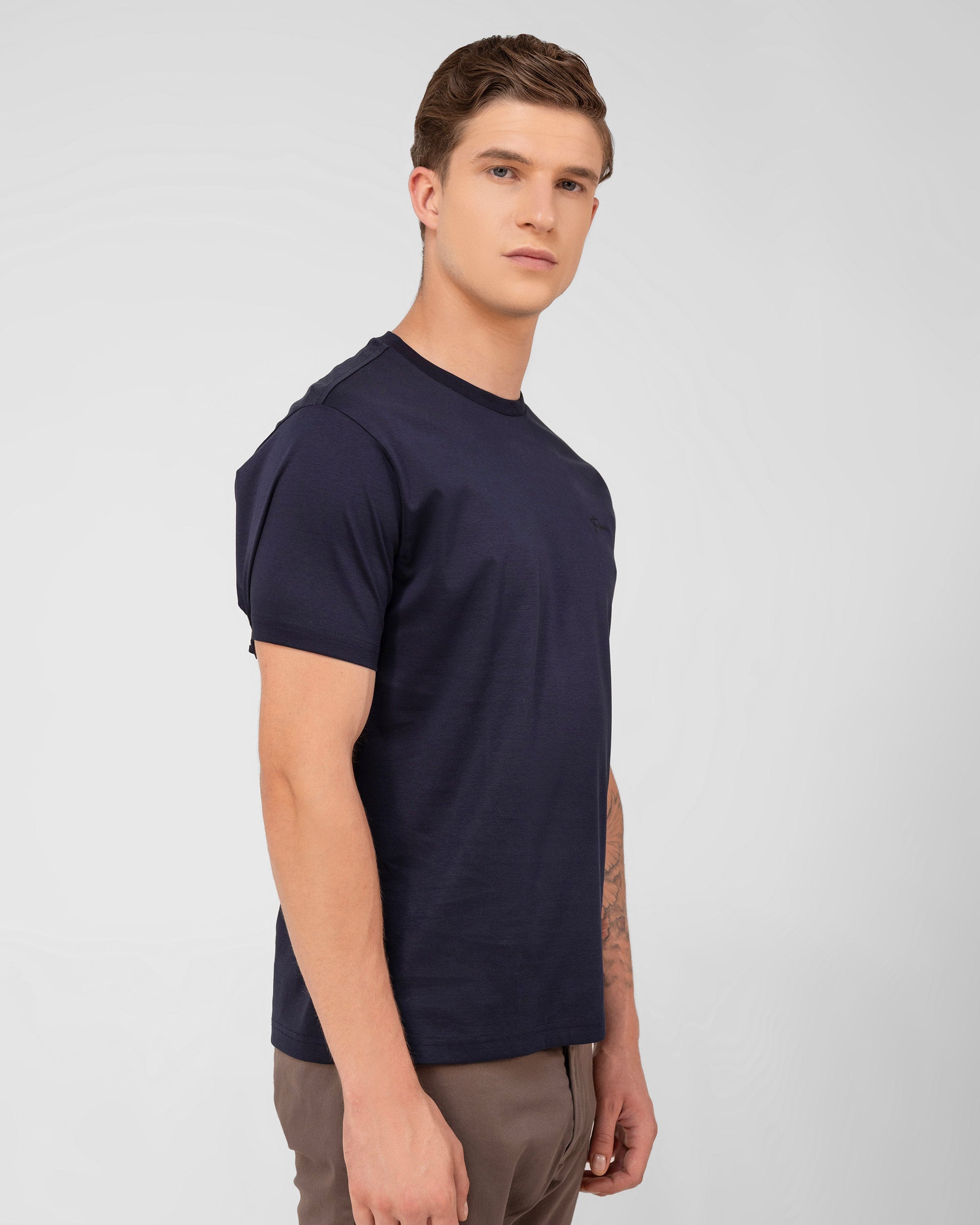 Tenhem Navy Crew Neck redefines classic sophistication. Crafted from super compact fibers and enhanced with super mercerisation for a radiant pearl finish, it offers unparalleled style and luxury. The 230 GSM heavyweight fabric ensures durability and comfort, making it perfect for any occasion. The timeless design, featuring tonal logo detailing and Tenhem Pique texture, delivers an elevated look. Ideal for pairing with beige or denim, this versatile piece exudes understated elegance. As part of the Luxury Collection, it’s the ultimate choice for those who seek the perfect balance of quality, comfort, and style.