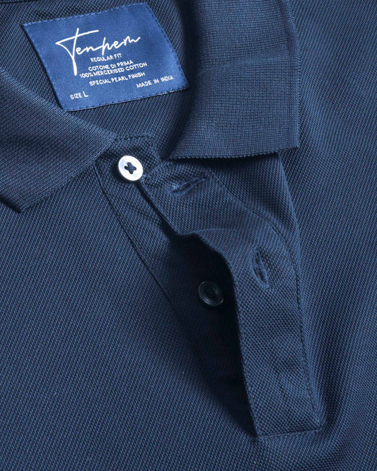 • Navy Blue Polo T-shirt 2 Button Mercerised Cotton Pique