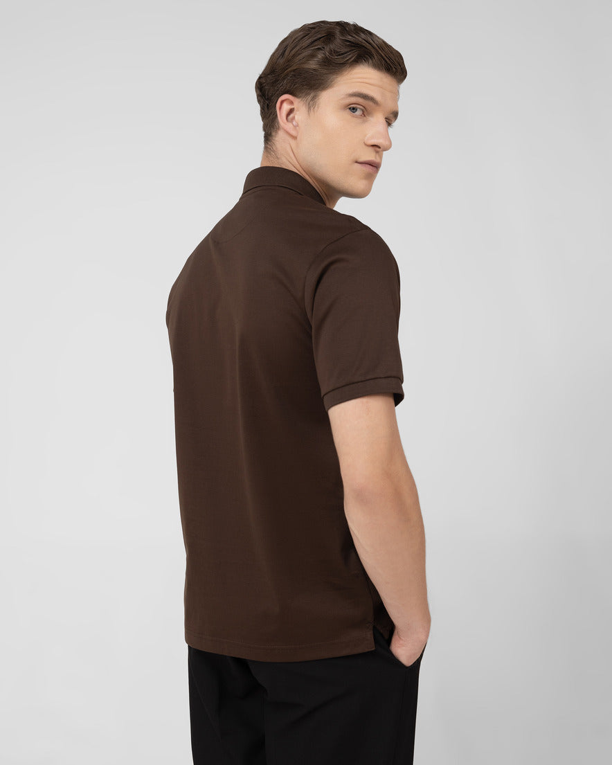 Introducing the TENHEM Brown Polo — a masterstroke of timeless craftsmanship. Crafted from super compact cotton and treated with a super mercerized pearl finish, this heavyweight 250 GSM icon delivers unmatched luxury. Featuring a Signature TENHEM Interlock texture, bold contrast logo detailing, and a solid 5-ply collar, its classic regular fit pays homage to the original polo — refined for today’s discerning gentleman.