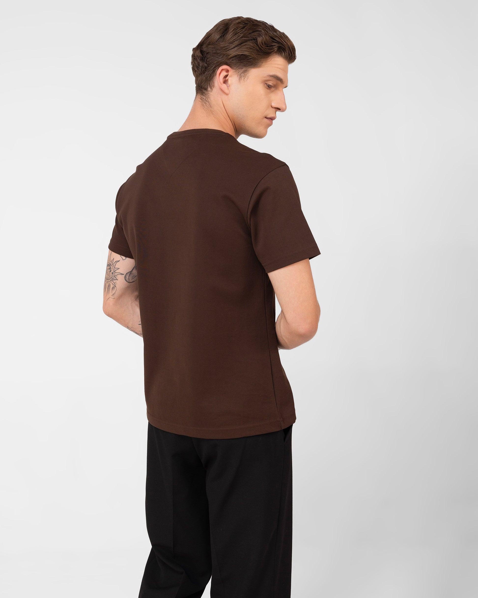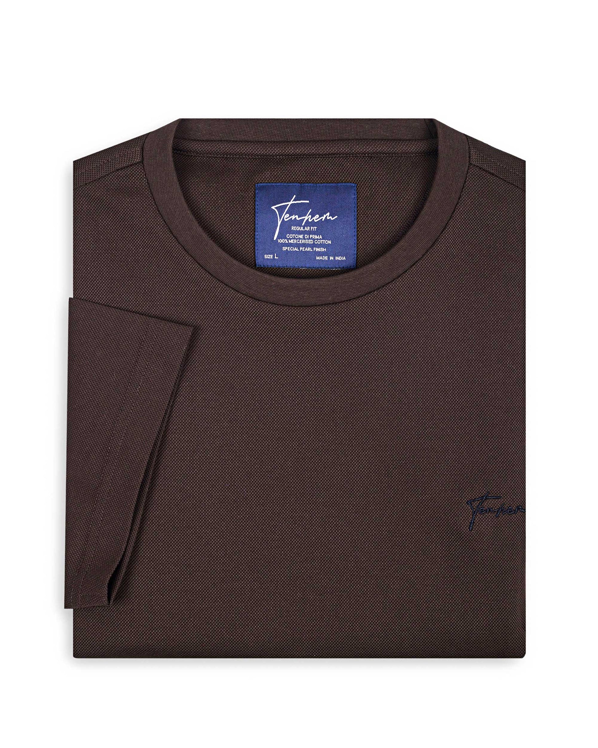 Men's Brown Pique Cotton Casual Crew Neck