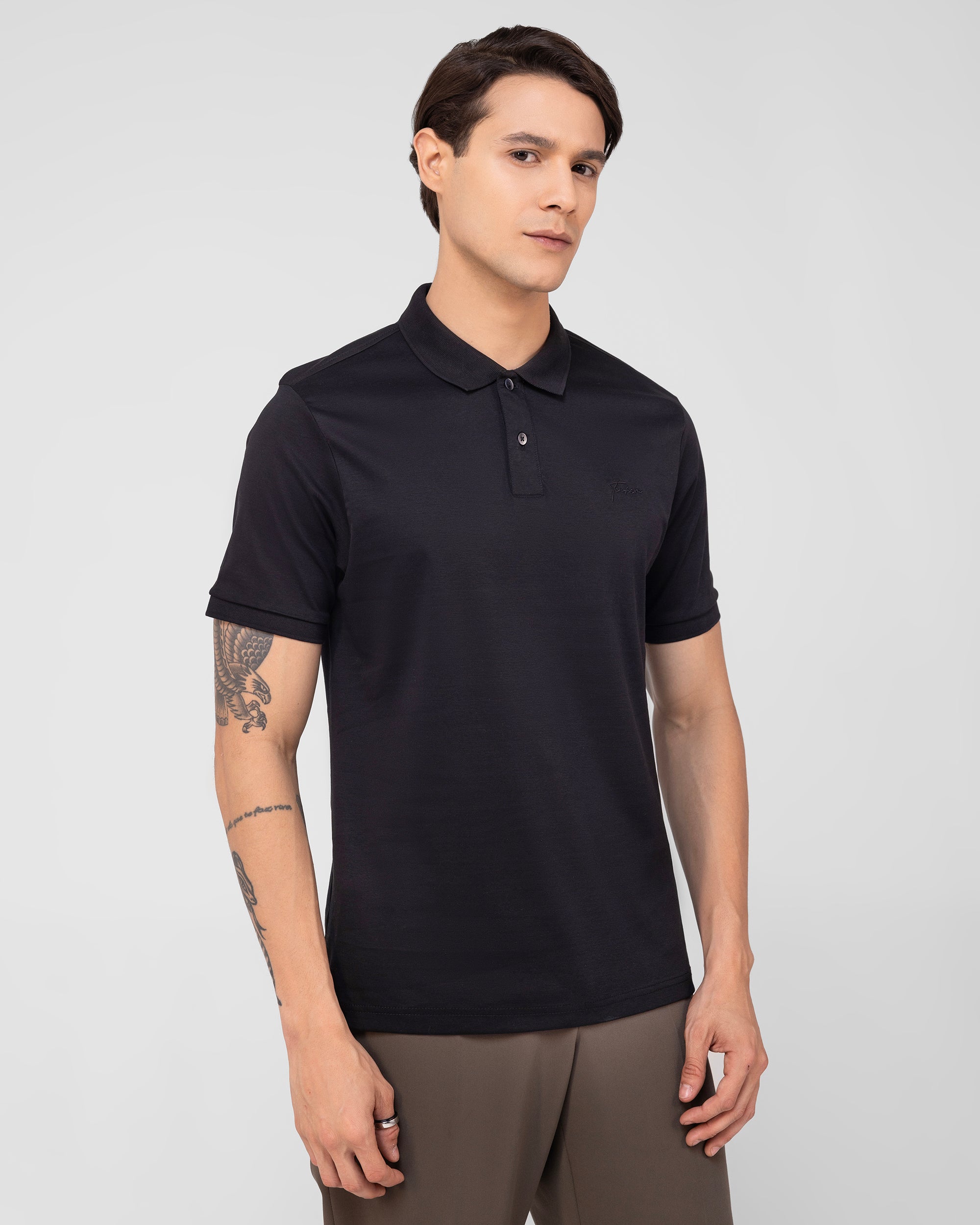 Mercerised Cotton Polo Shirt Interlock Regular Fit Black