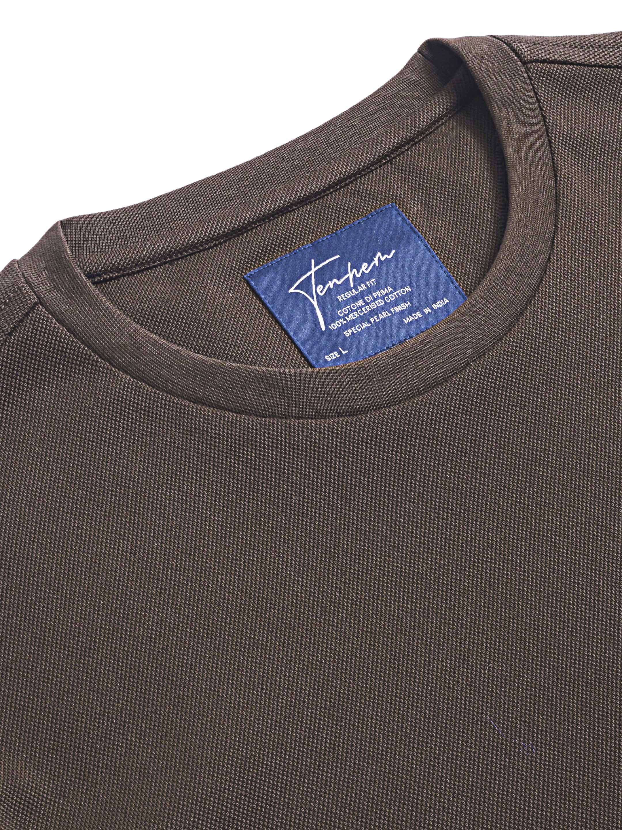 Men's Brown Pique Cotton Casual Crew Neck