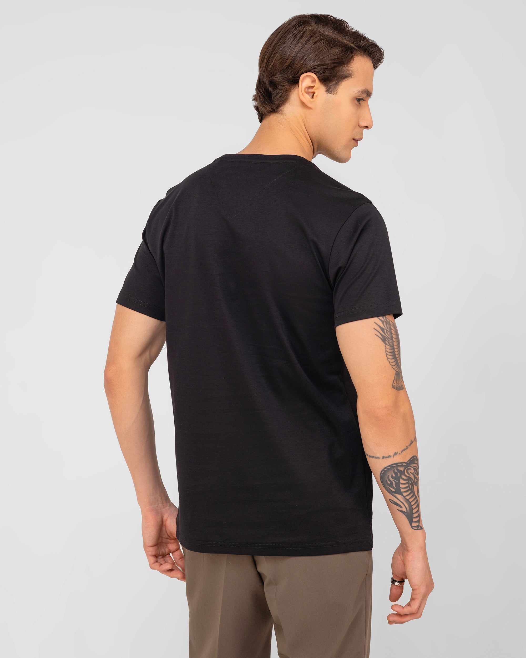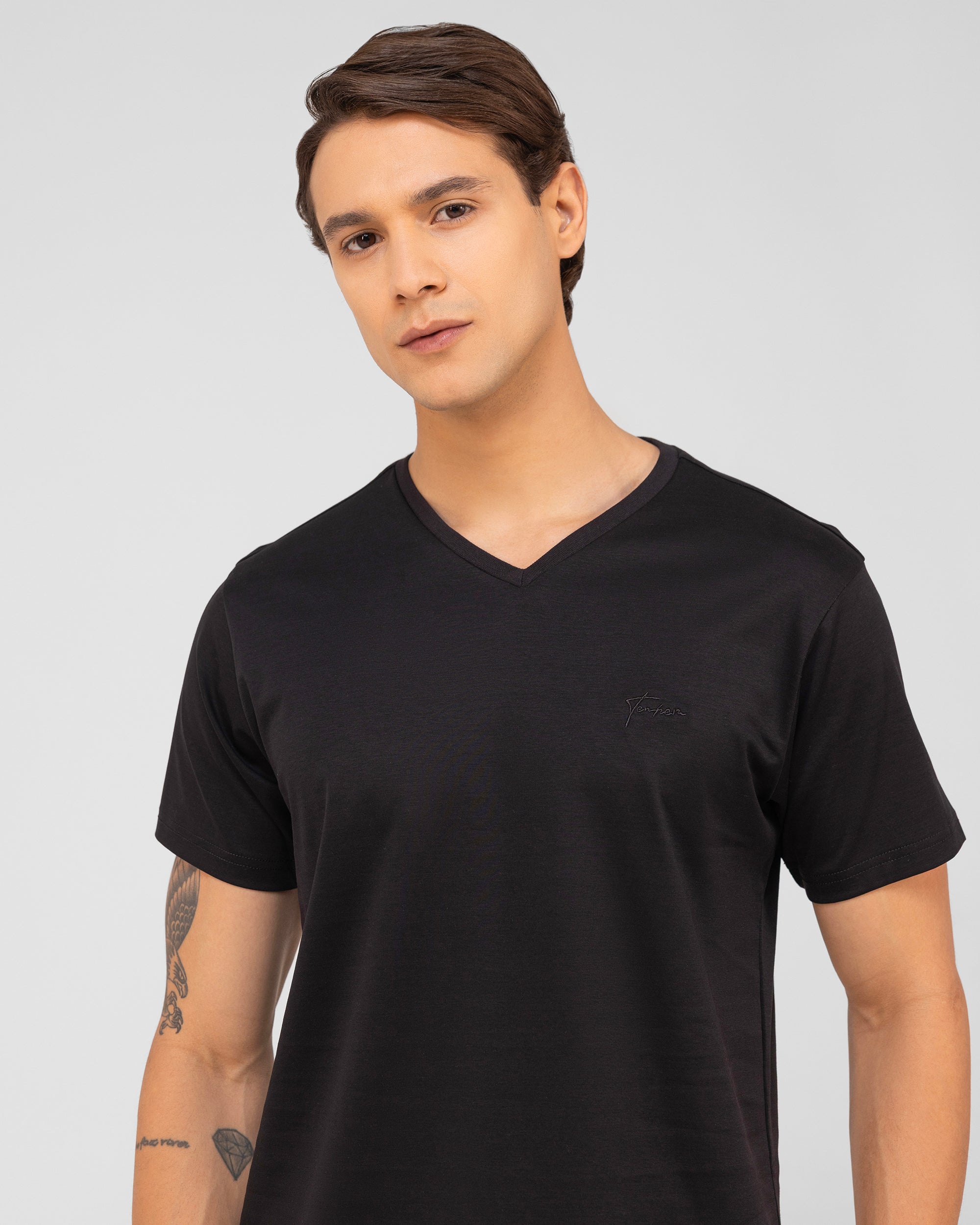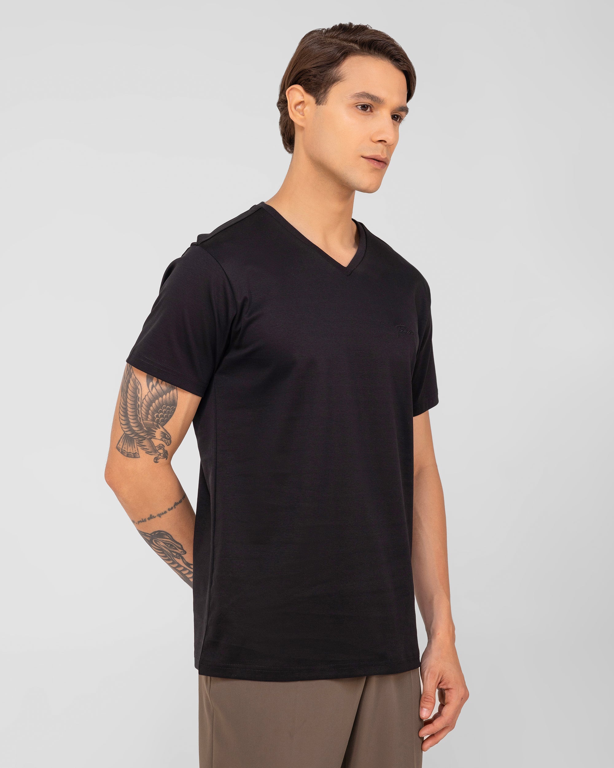 Men's Black Interlock Cotton Casual V Neck T-shirt