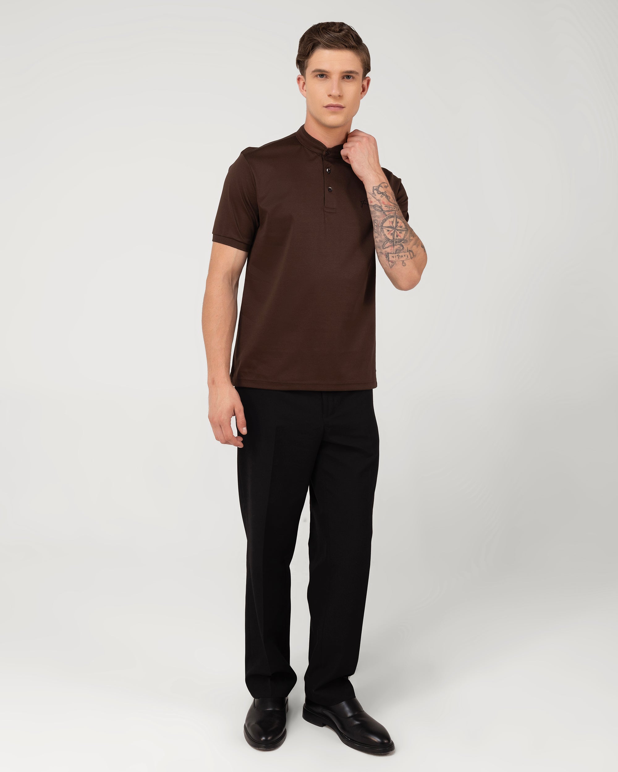 Tenhem Brown Stand-up Collar Polo is a masterclass in earthy elegance and refined craftsmanship. Made with super compact fiber and treated with super mercerisation, it boasts a pearl-like sheen that quietly commands attention. At 225 GSM, this heavyweight polo balances structure and breathability effortlessly. The 5-ply stand-up collar introduces a bold yet classic twist, while tonal logo detailing and the signature Tenhem Pique texture speak volumes in subtlety. Pair it with beige or denim for a look that’s timeless and intentional. Inspired by the original polo, reimagined for today — this is more than premium; it’s perfection in a thread.