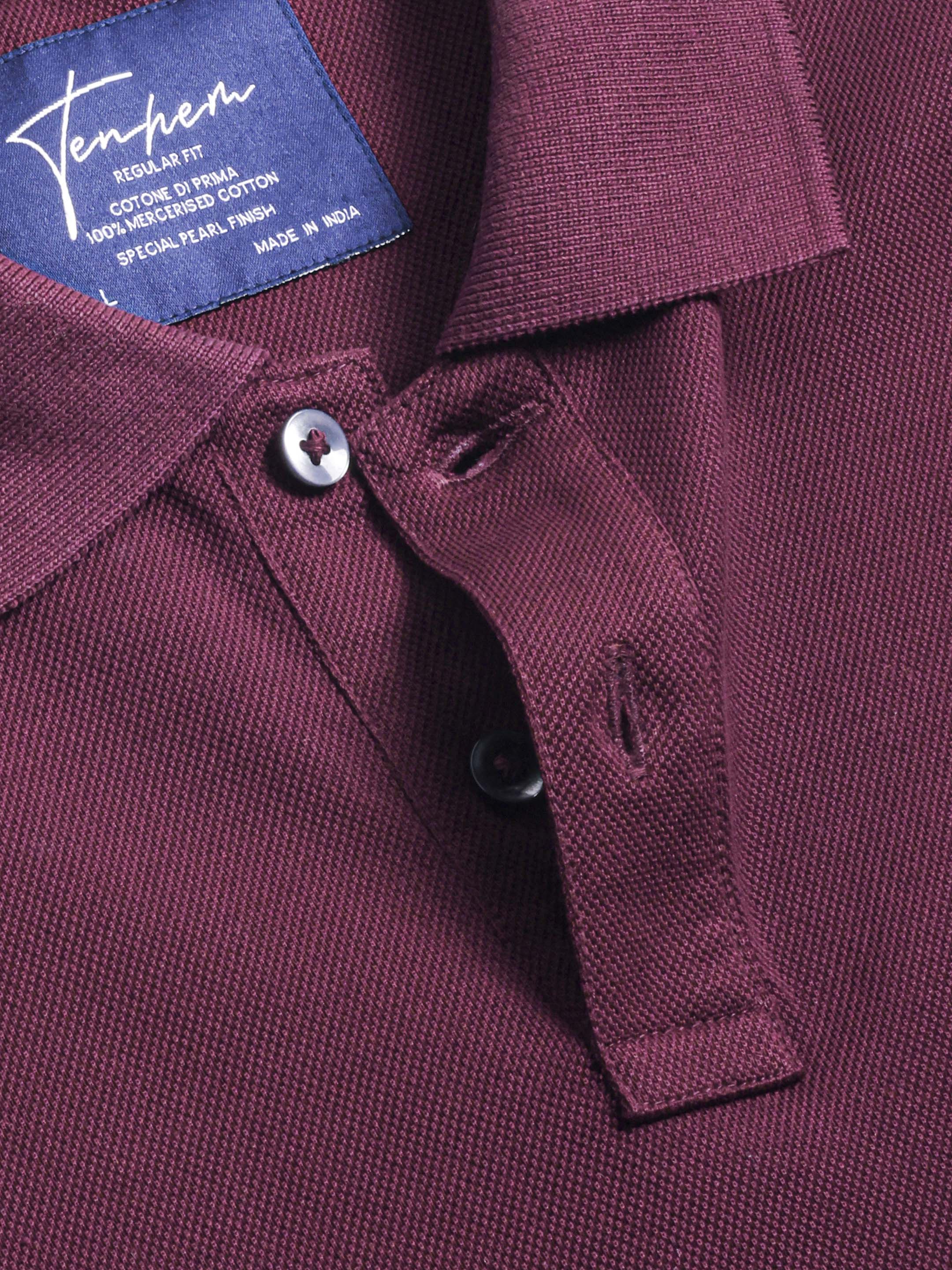 Discover the TENHEM Wine Polo — a luxury polo shirt crafted from double-count premium cotton fibers. Featuring a pearl-finish with super mercerization, heavyweight 250 GSM knitted pique fabric, and a durable 4-ply collar, it offers a classic fit for men. Perfect for parties, casual outings, and premium occasions. Pair it with black or dark grey bottoms for effortless style.